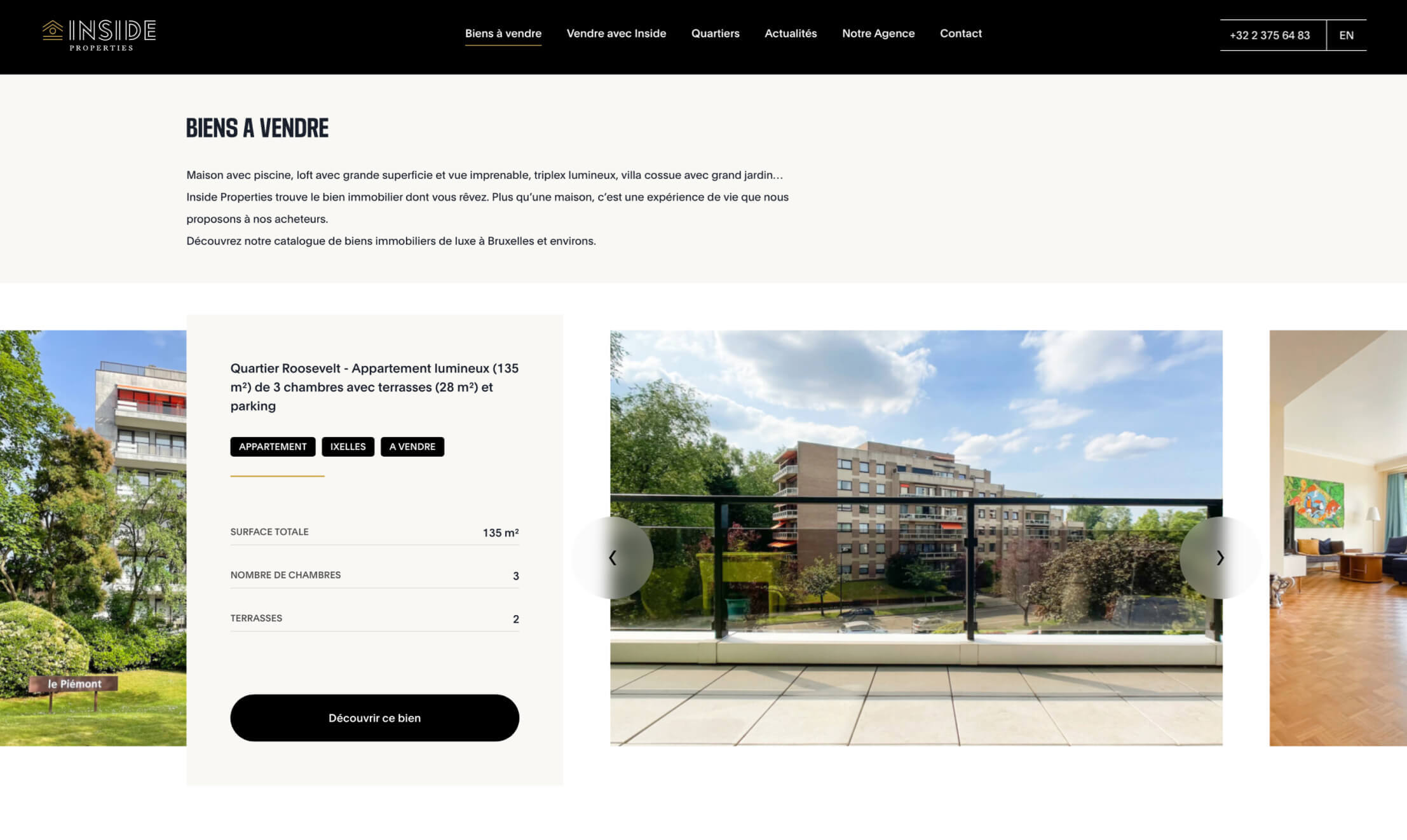 Based in Brussels, Inside Properties is a unique real estate agency, specializing in buying and selling properties. Their distinct approach? They limit themselves to showcasing only 3 properties at a time.